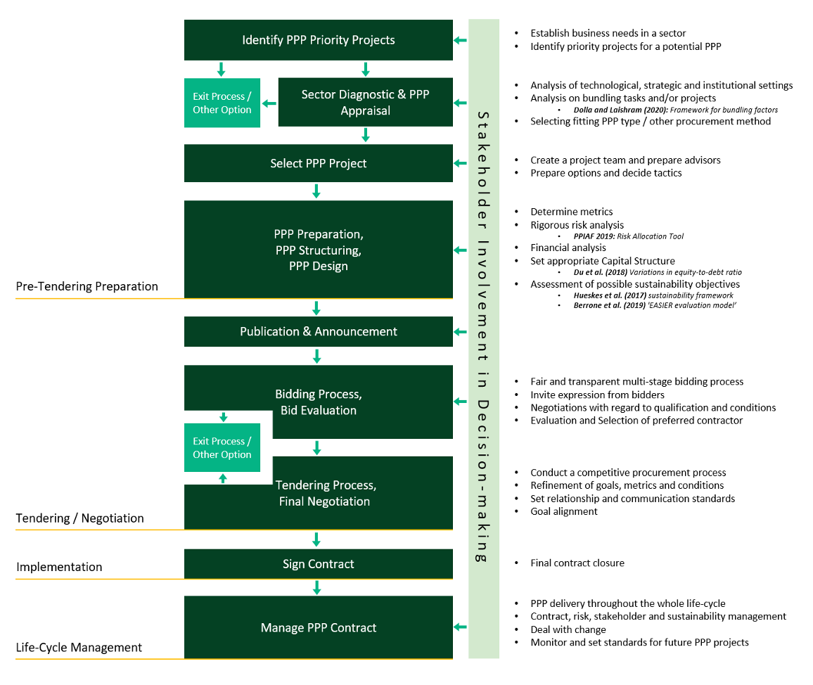 Figure 3: PPP Process Framework, own illustration, based on Asian Development Bank (2008); Kwak et al. (2009); The World Bank (2017)7,16,62